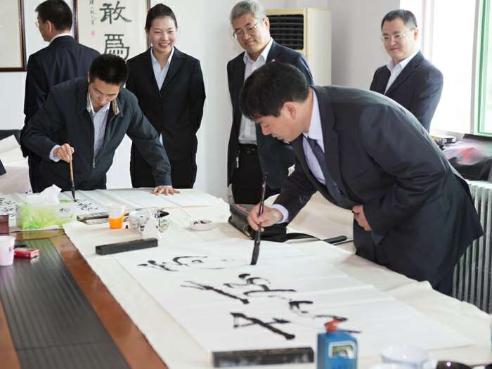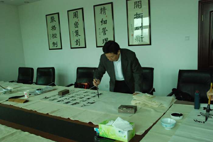 为弘扬传统文化,丰富员工业余生活,5月6日上午,满冠体育·满冠官方网站-满冠体育(中国)举办了首届书画艺术学习交流活动。本次活动邀请了中国书法家协会会员孟云飞博士、中国书法家协会理事张铜彦先生、中国书法家协会编辑出版委员会副主任王荣生教授、人民艺术家协会理事于瑛先生等国内知名书画大师,各位书画大师在活动现场进行了艺术创作表演,挥毫泼墨,交流技艺,为满冠体育·满冠官方网站-满冠体育(中国)留下了数十副墨宝,还对部分员工的书画作品进行了悉心指导。公司员工现场欣赏了书画大师的艺术创作,并聆听了有关书画艺术鉴赏知识的介绍,部分员工还在活动现场进行创作,听取书画大师的讲解示范和点评。
